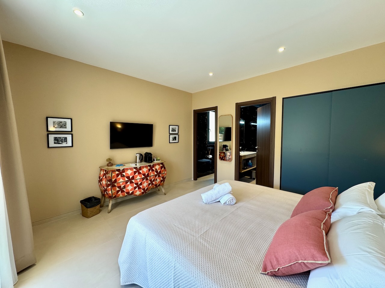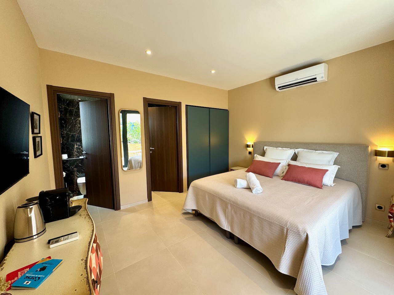 Spacieuse, lumineuse et parfaitement équipée, cette chambre est une invitation au repos profond. Ouverte sur une terrasse privative donnant sur le jardin ou le maquis, elle offre un cadre idéal pour déconnecter, respirer et profiter du rythme doux de la Corse.